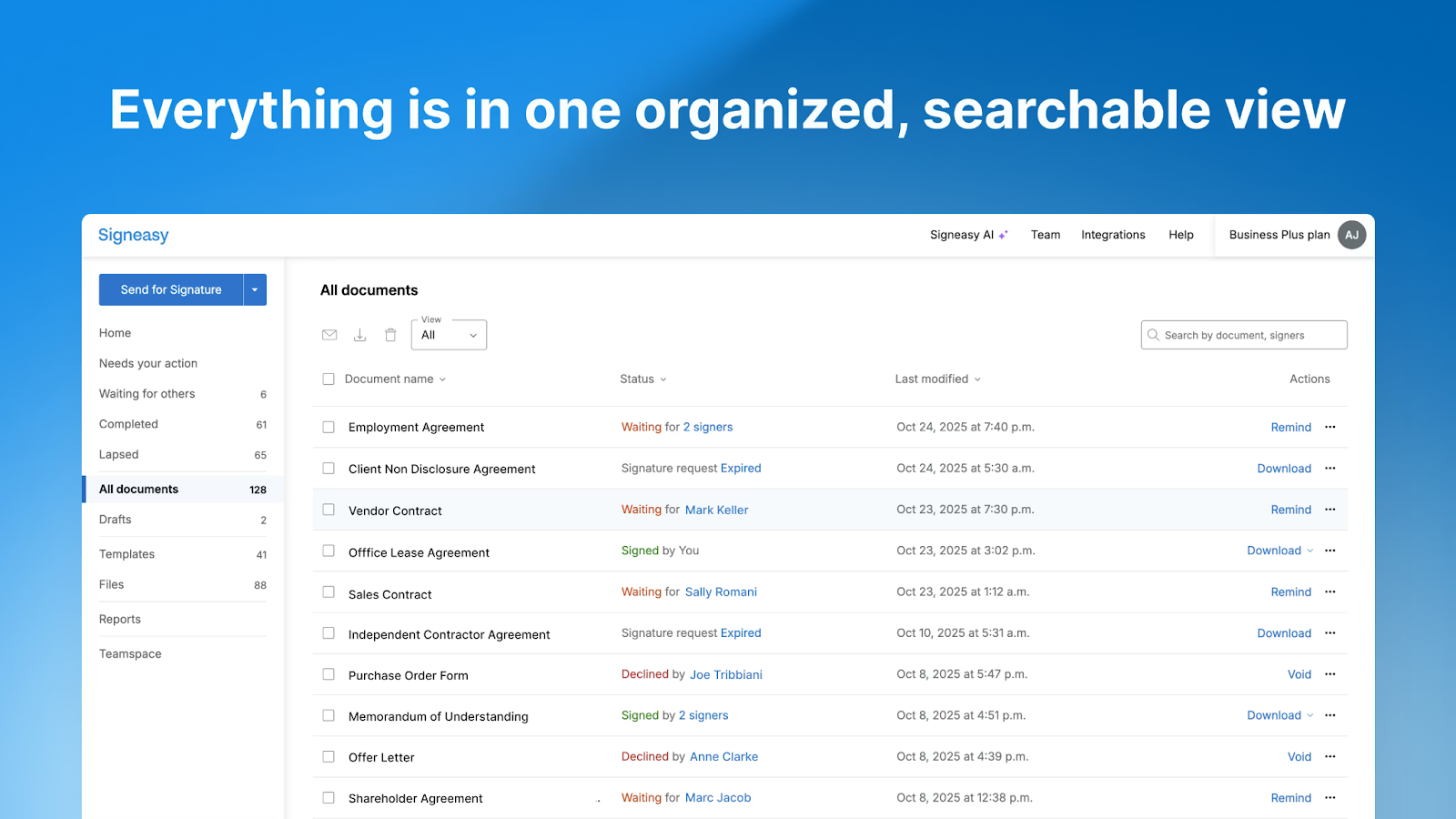 - Comprehensive contract management beyond just signatures
