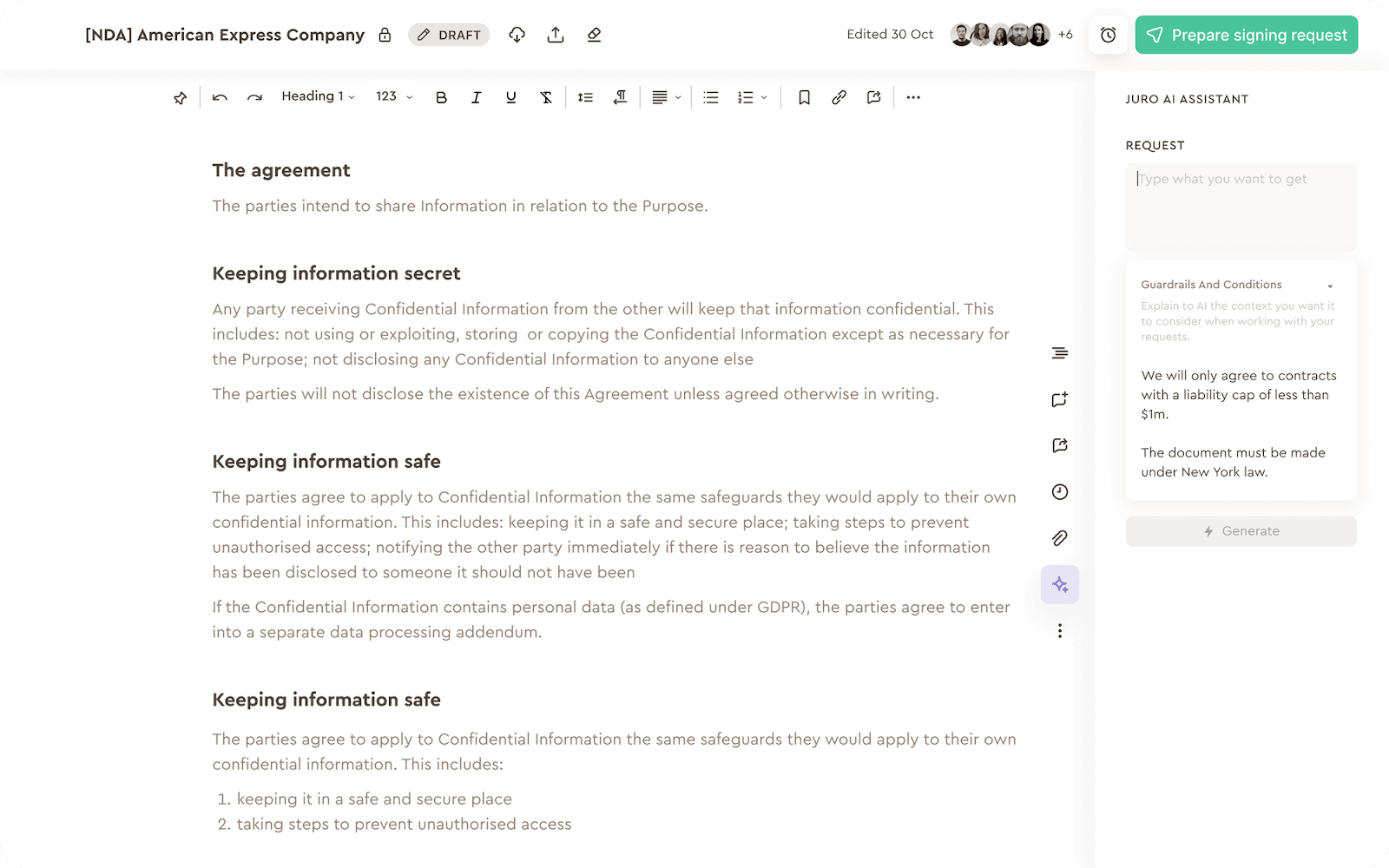 - AI-assisted contract review: Identify risks and key clauses using built-in AI tools