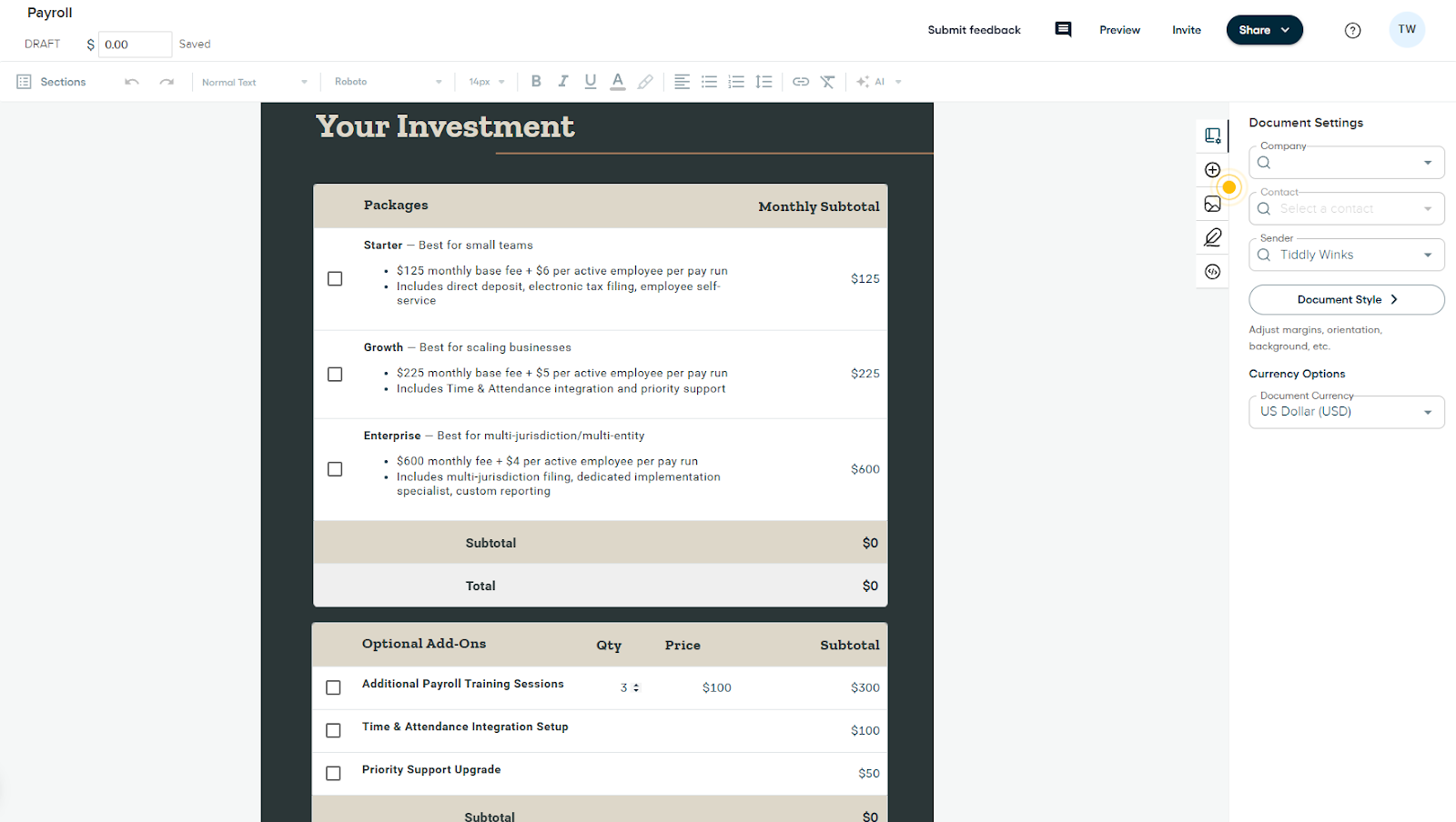 Proposify Price Breakdown