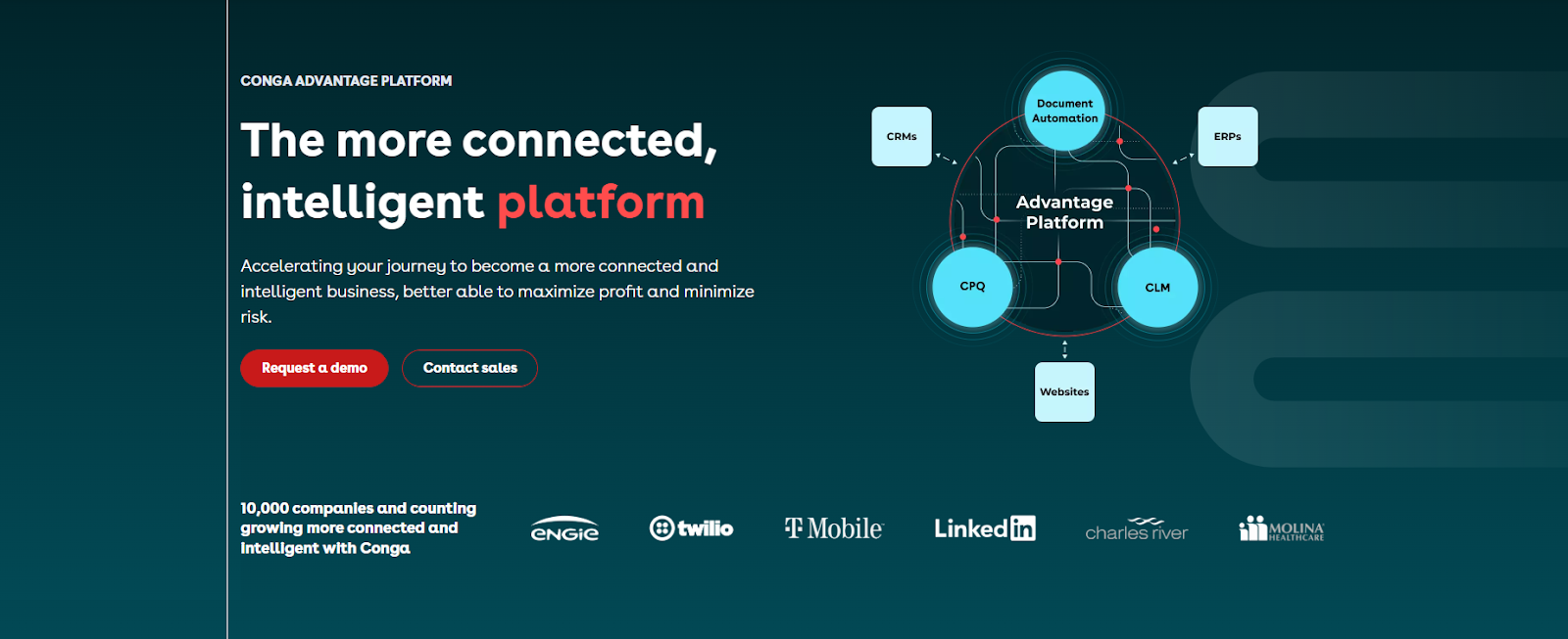 Conga is an innovative configure, price, quote (CPQ), contract lifecycle management(CLM), and document automation service. It empowers users to create and keep track of dynamic proposals, contracts, quotes, and more. It also covers the billing stage of a contract lifecycle, with tools that offer customized, automated billing.