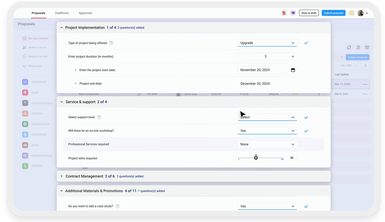 - Buyer engagement: Create professional proposals and pricing quotes in minutes, detailed down to the project duration.