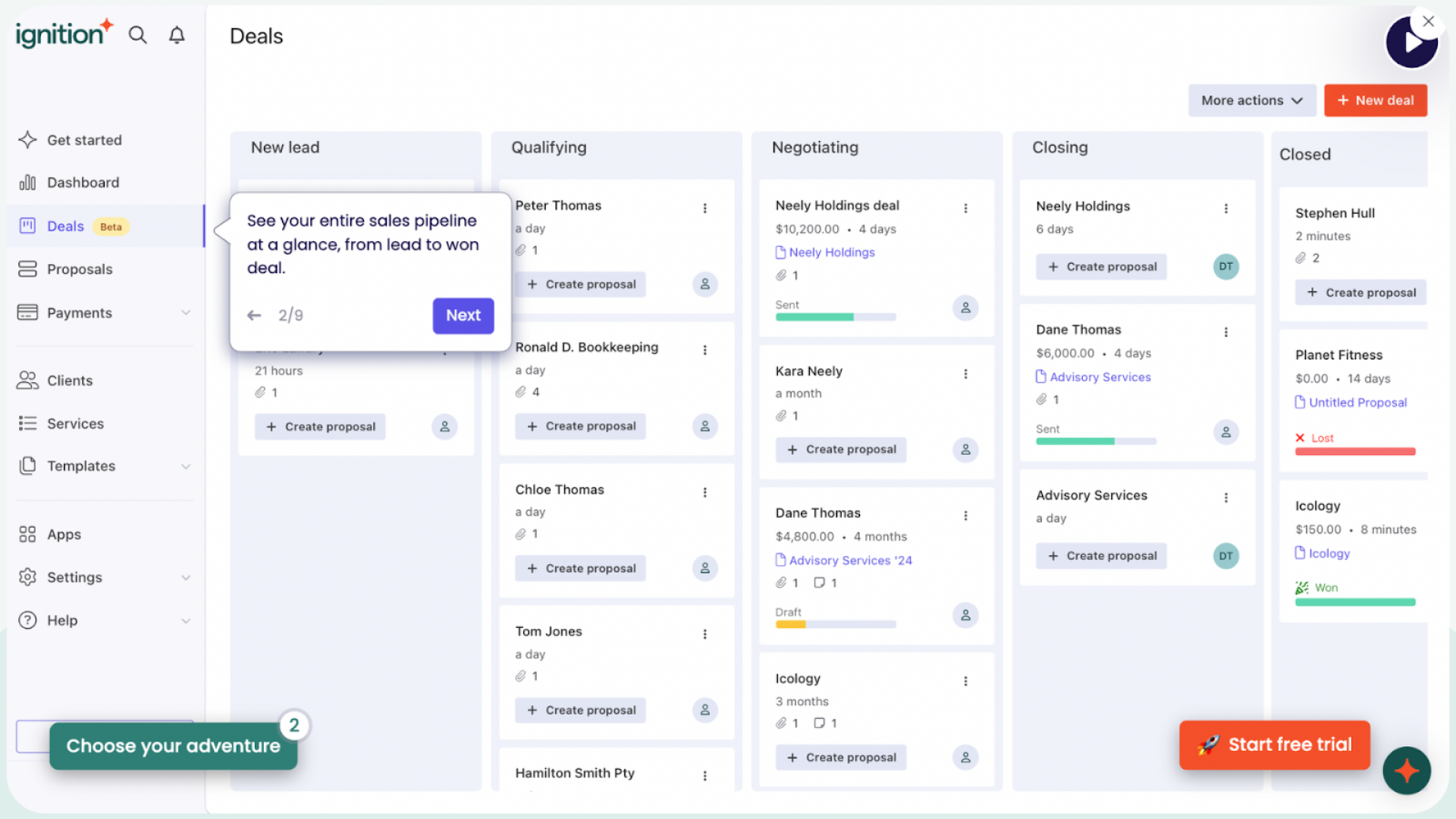 Ignition works well for accounting firms that want sales proposals tightly linked to payment collection and client engagements. However, many accounting and advisory teams find that success depends on what happens before payment, especially during the proposal and deal-closing stage.