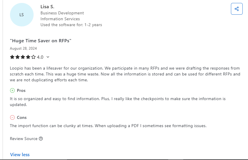- Filtering or working with long RFPs can be awkward