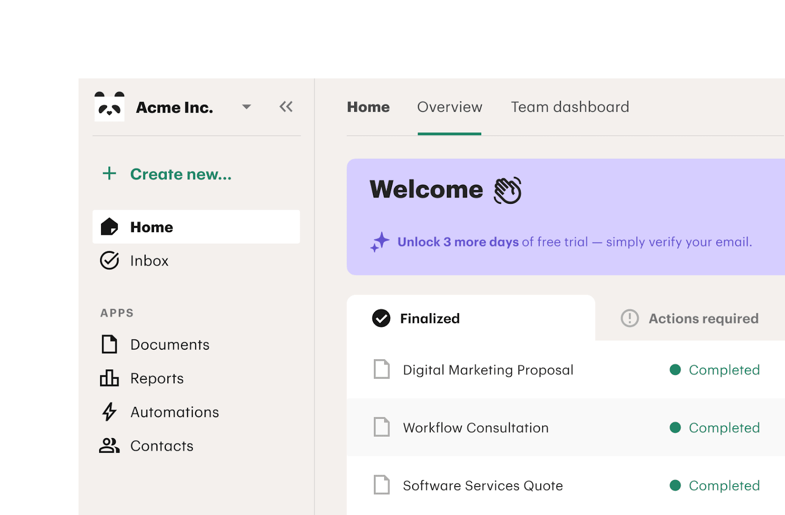 - Centralizes proposal, contract, and e-signature workflows in one platform.