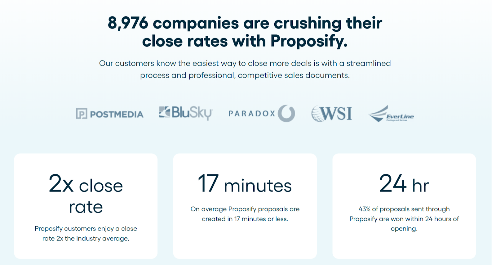 If your goal is to create professional proposals and close deals faster, Proposify is built for exactly that. No price negotiations. No lengthy implementations. No enterprise bloat. Just straightforward proposal software that helps you win more business.