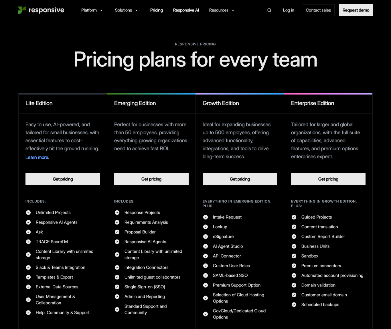 When you need to manage full response projects, not just answer questions, Emerging Edition becomes necessary.