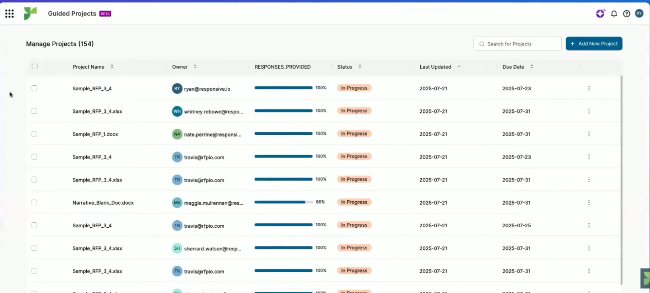 - Project Management: Organize RFP projects with task assignments, deadlines, and progress tracking.