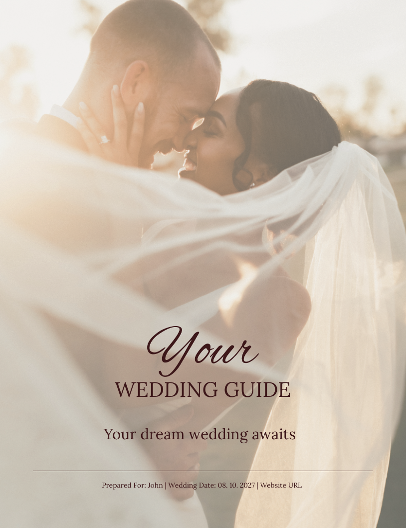 Start your proposal with an elegant cover page featuring your logo, client names, and wedding date. It sets a professional, organized tone that immediately captures attention and reflects your brand’s style.